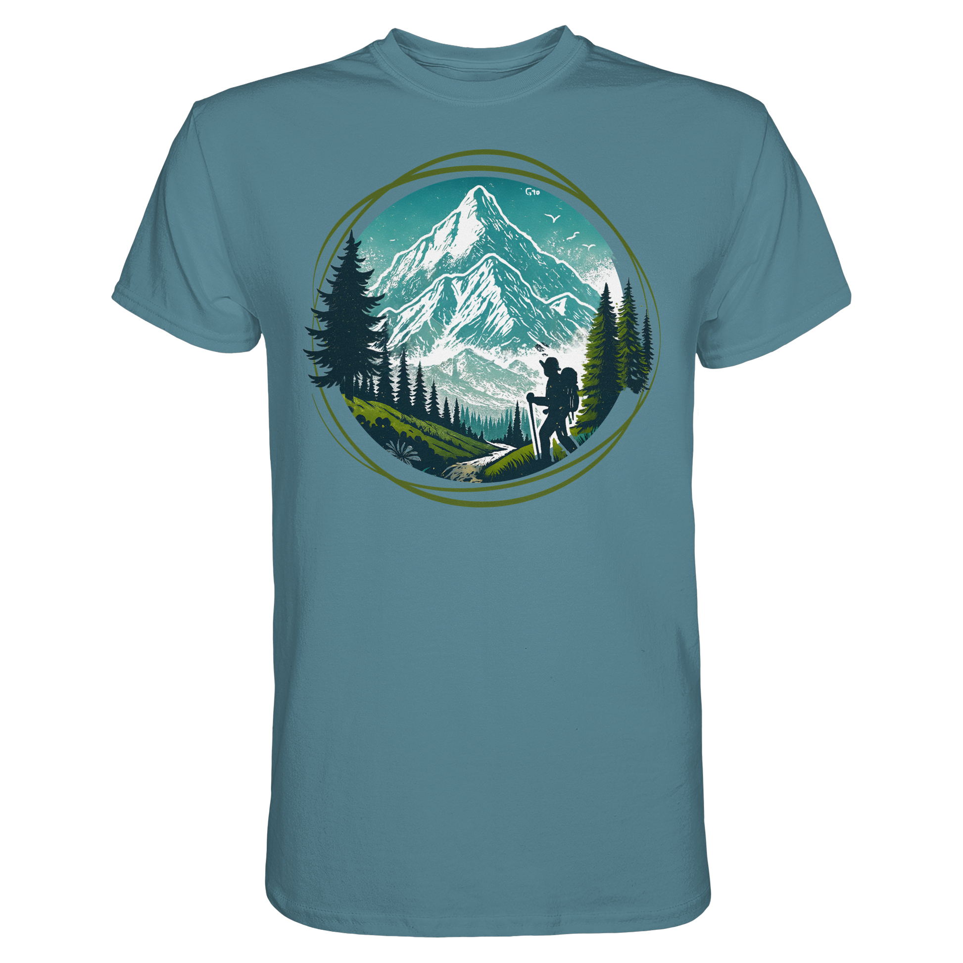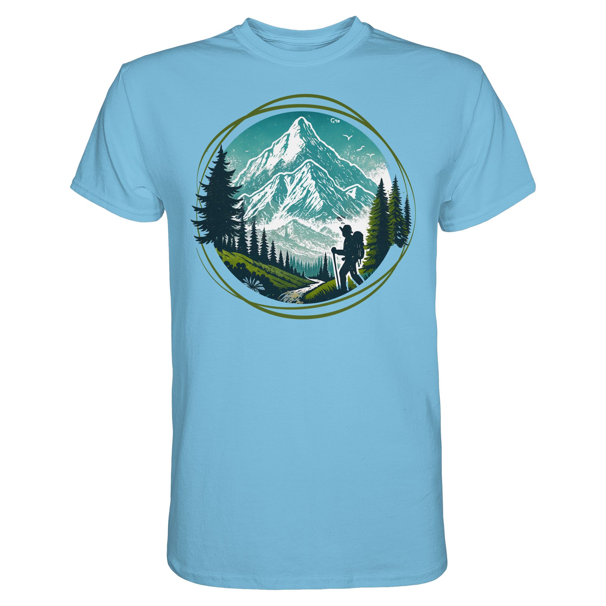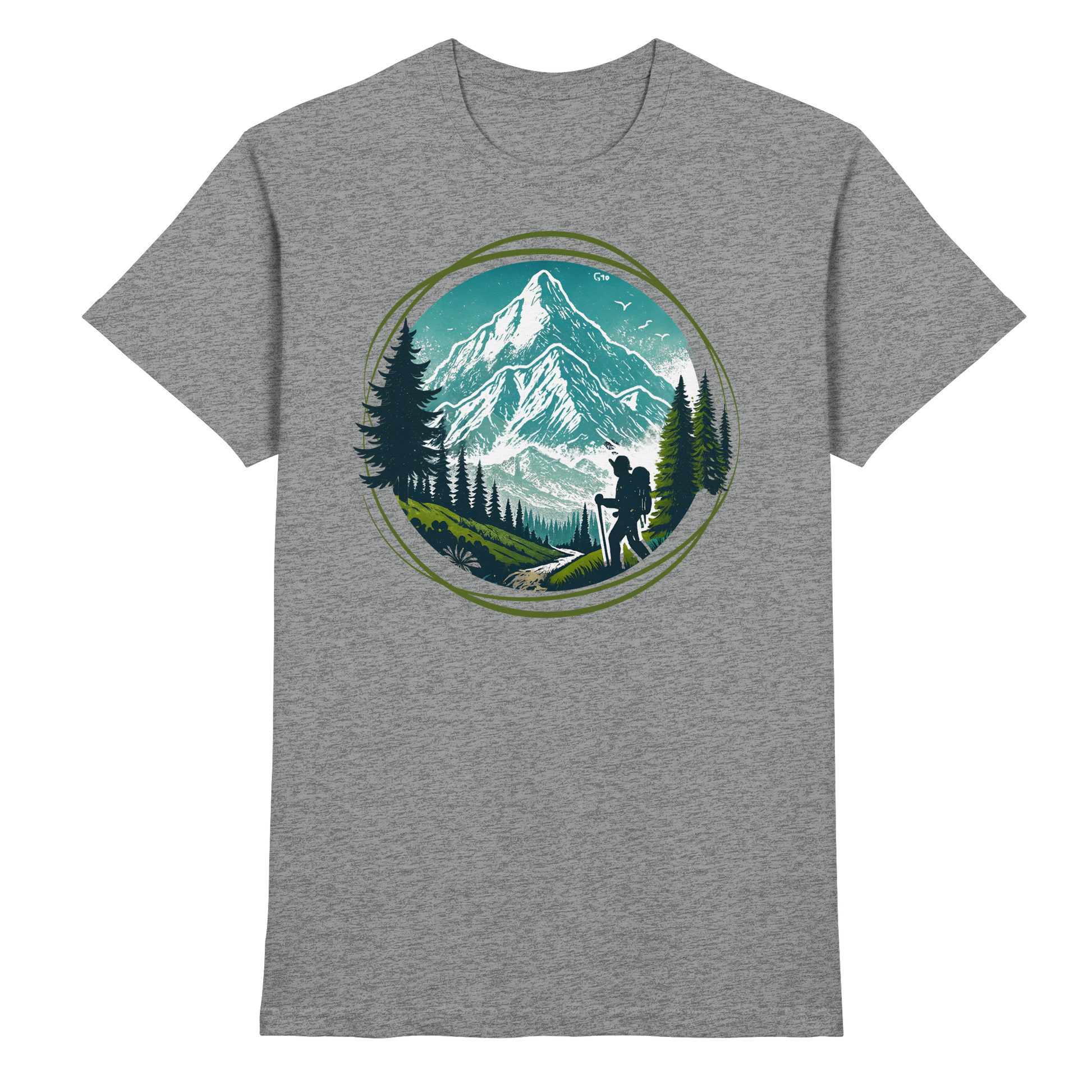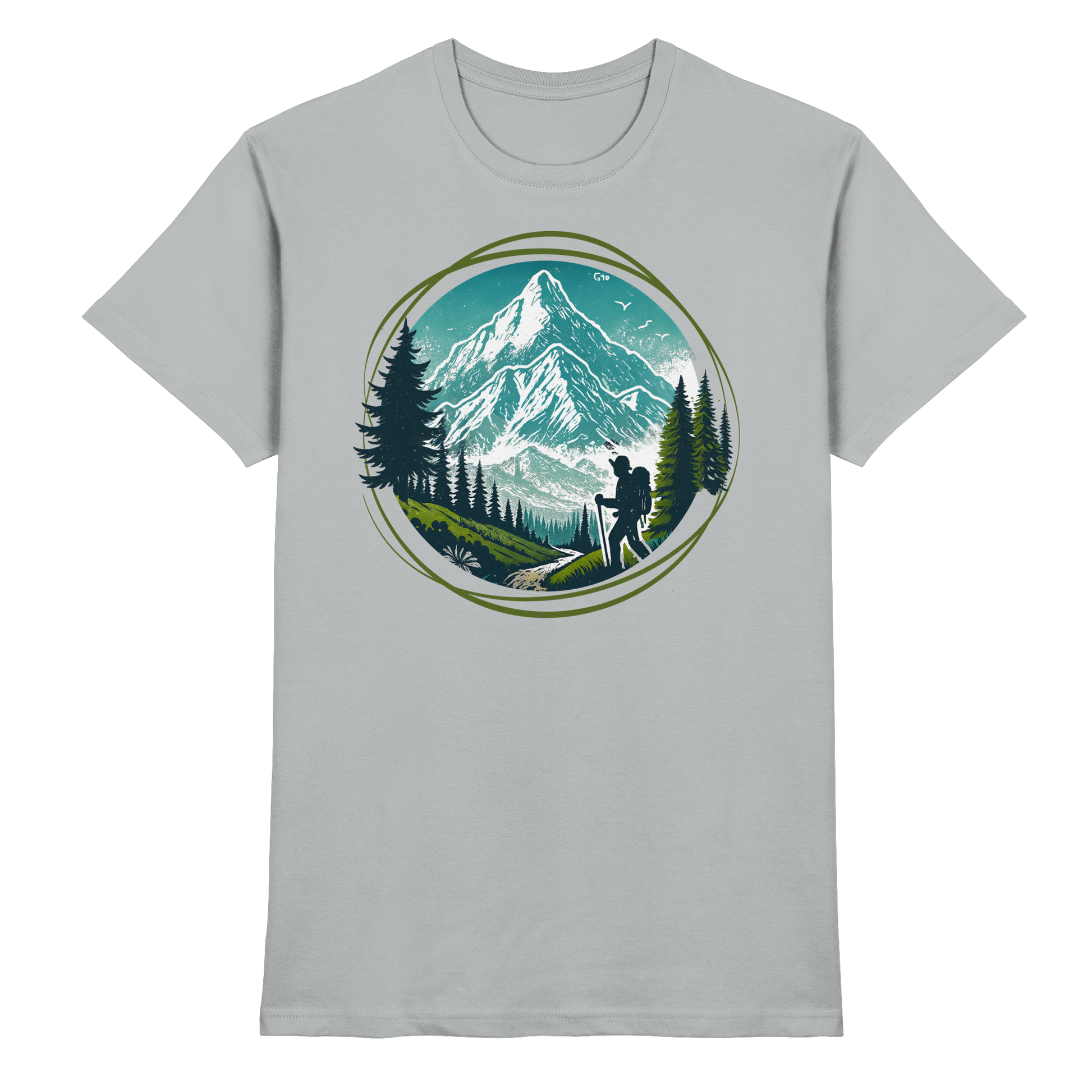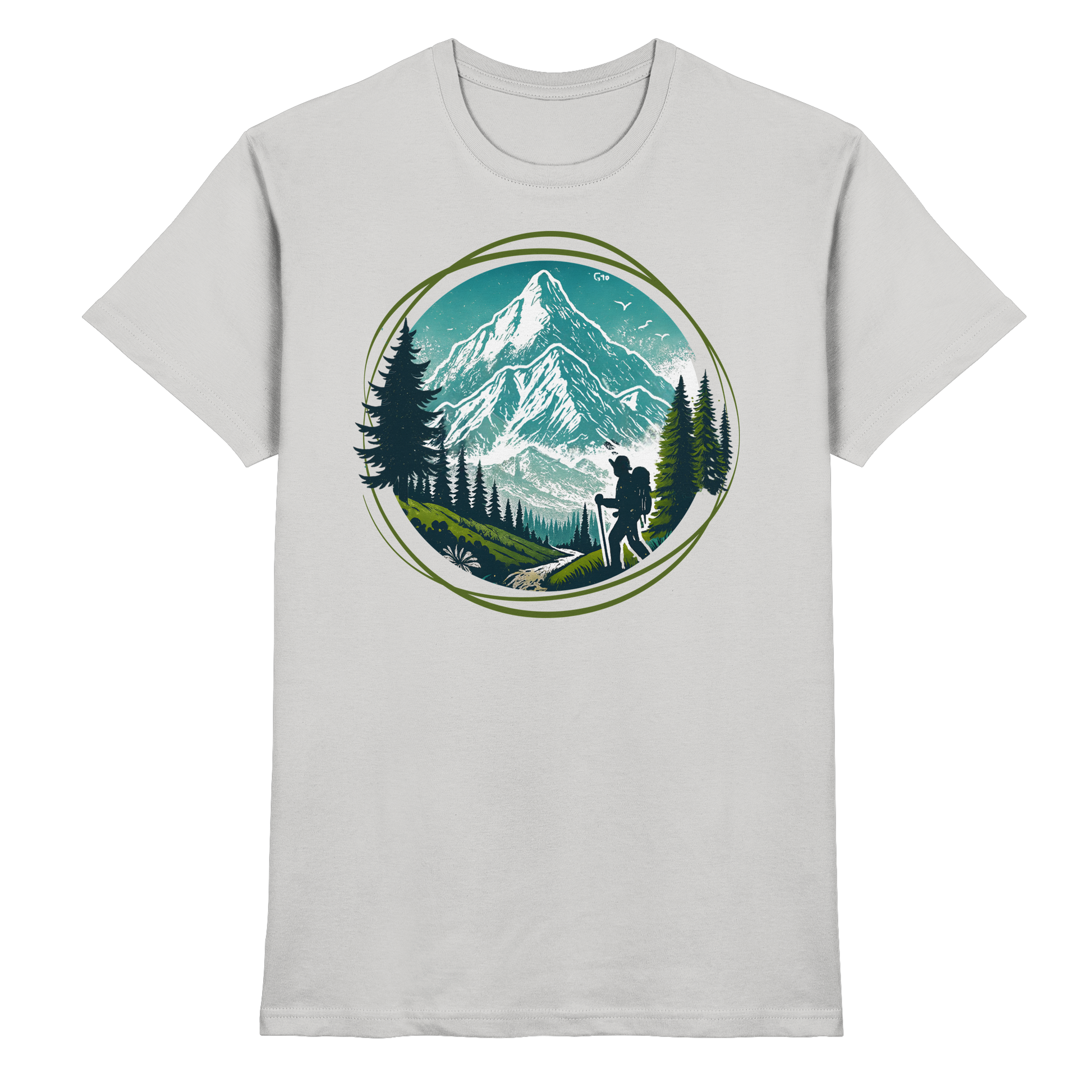 Vorne das Panorama, hinten der Stolz: Das Shirt zeigt auf der Vorderseite das Bergmotiv mit Wanderer – Sinnbild für Freiheit, Natur und das Gefühl, in Embach anzukommen. Auf der Rückseite steht klar und ruhig der Schriftzug „EMBACH“.