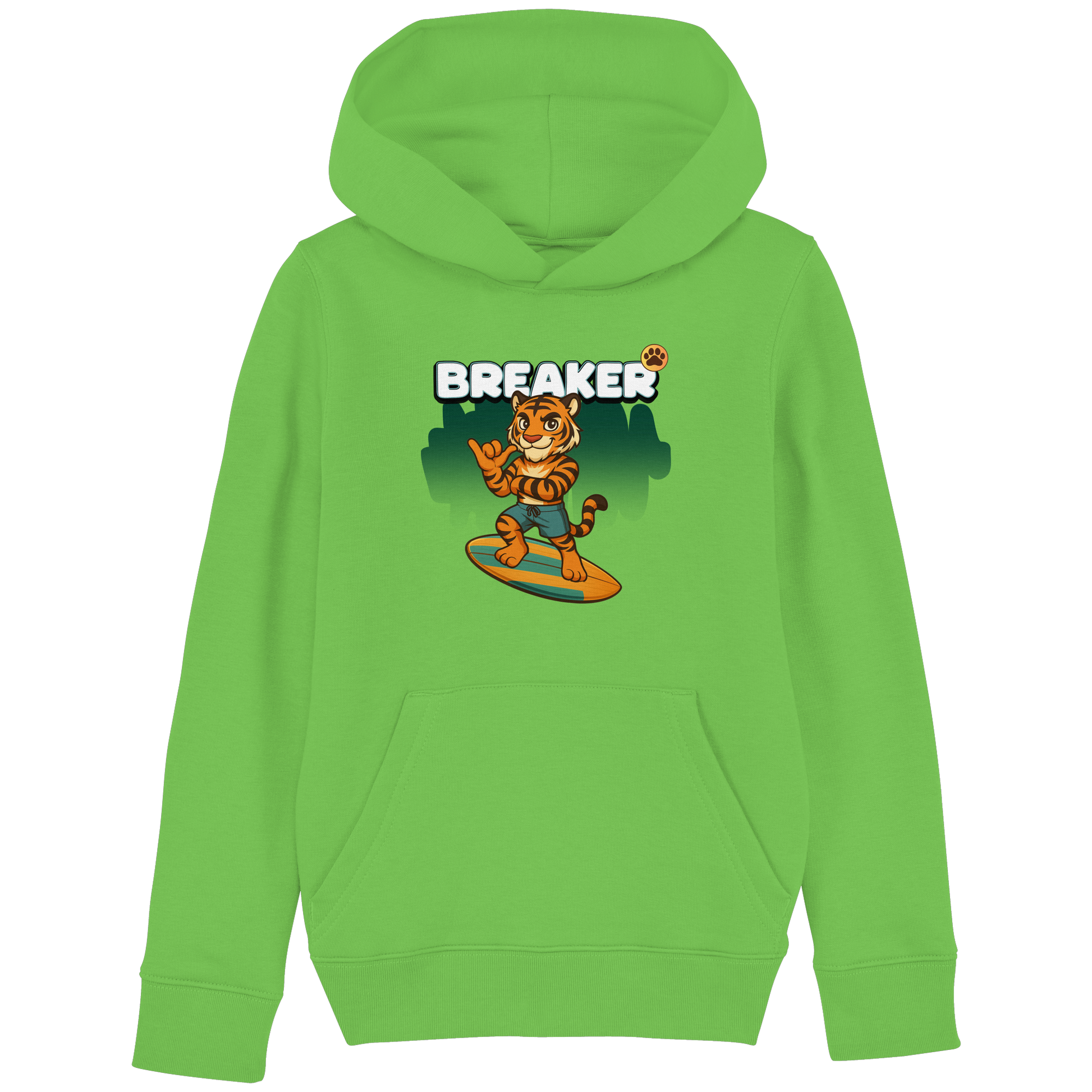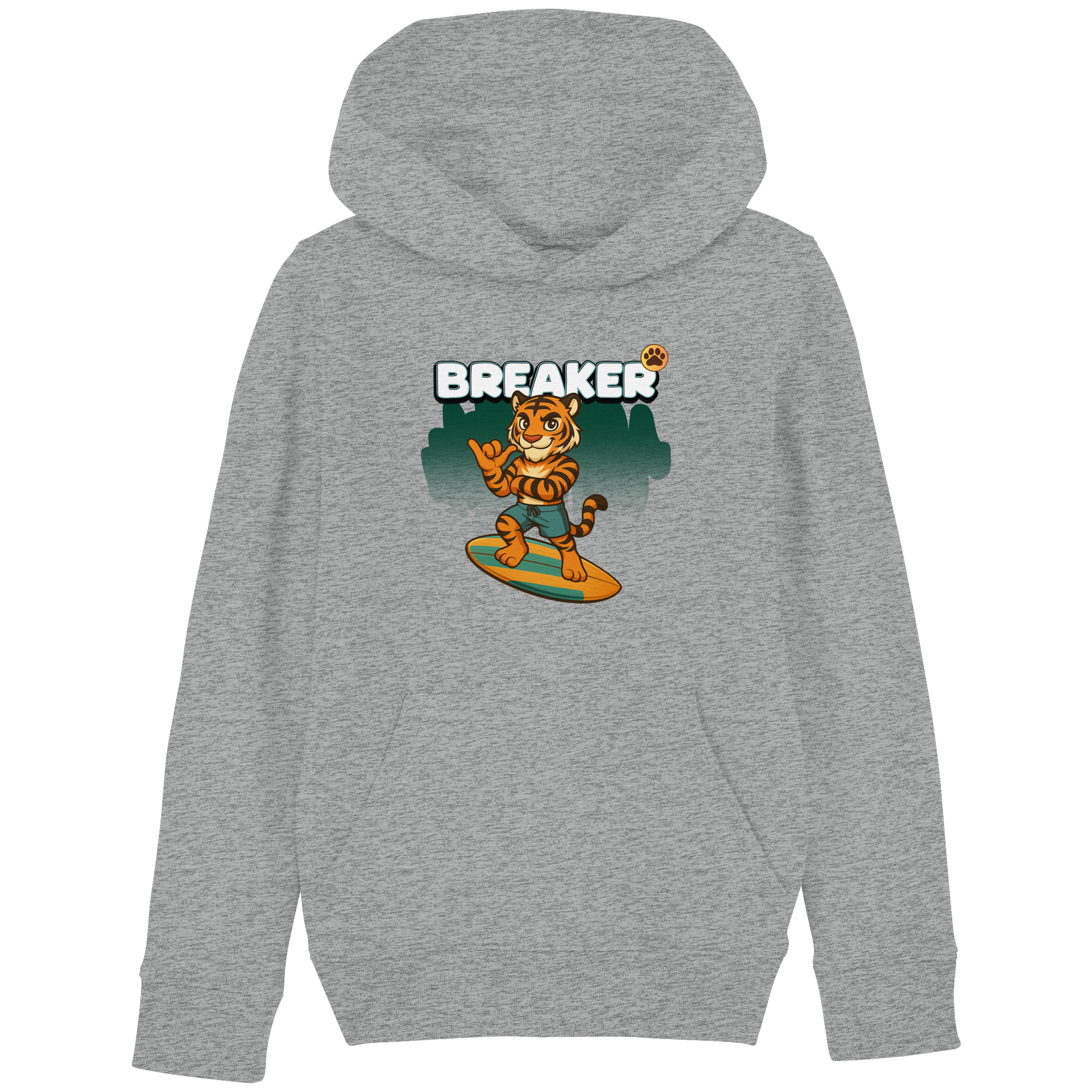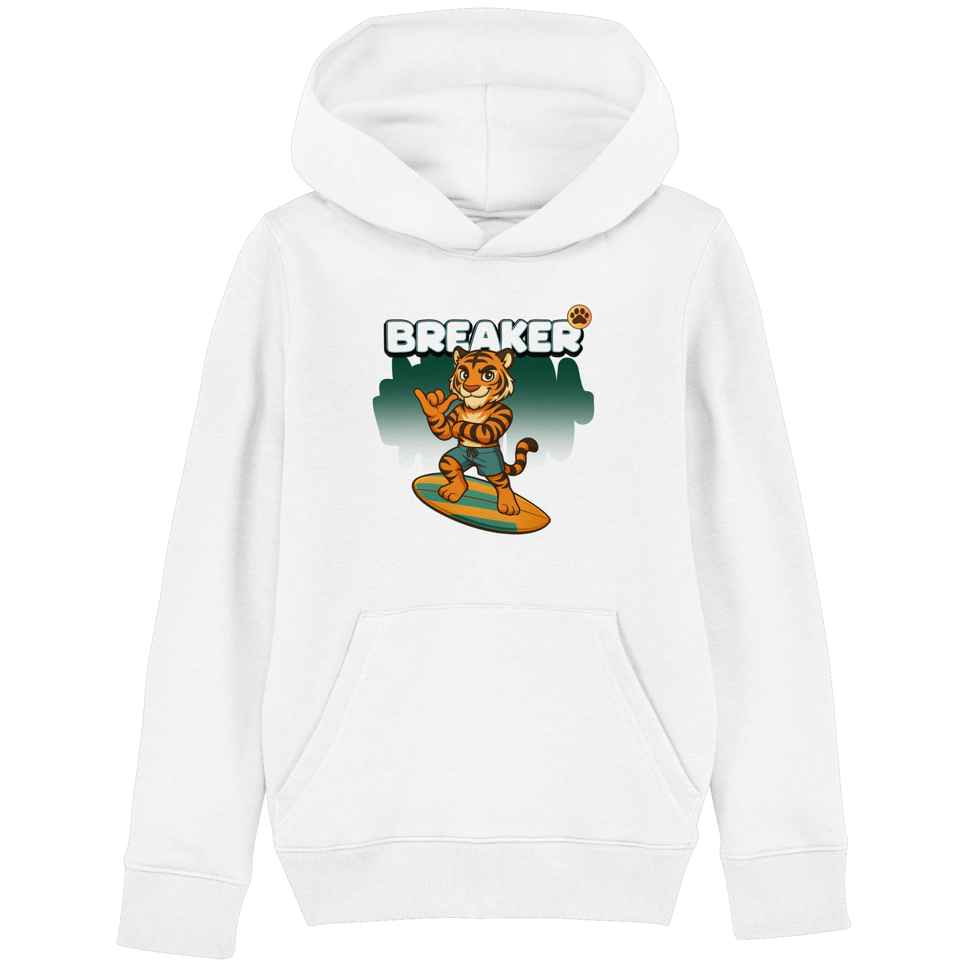 Der Breaker Surf Hoodie bringt Sommer-Feeling in die Wild Crew. Ein Tiger auf dem Surfbrett – cooler geht’s nicht. Lässig, bequem und perfekt für Kids, die Energie lieben.