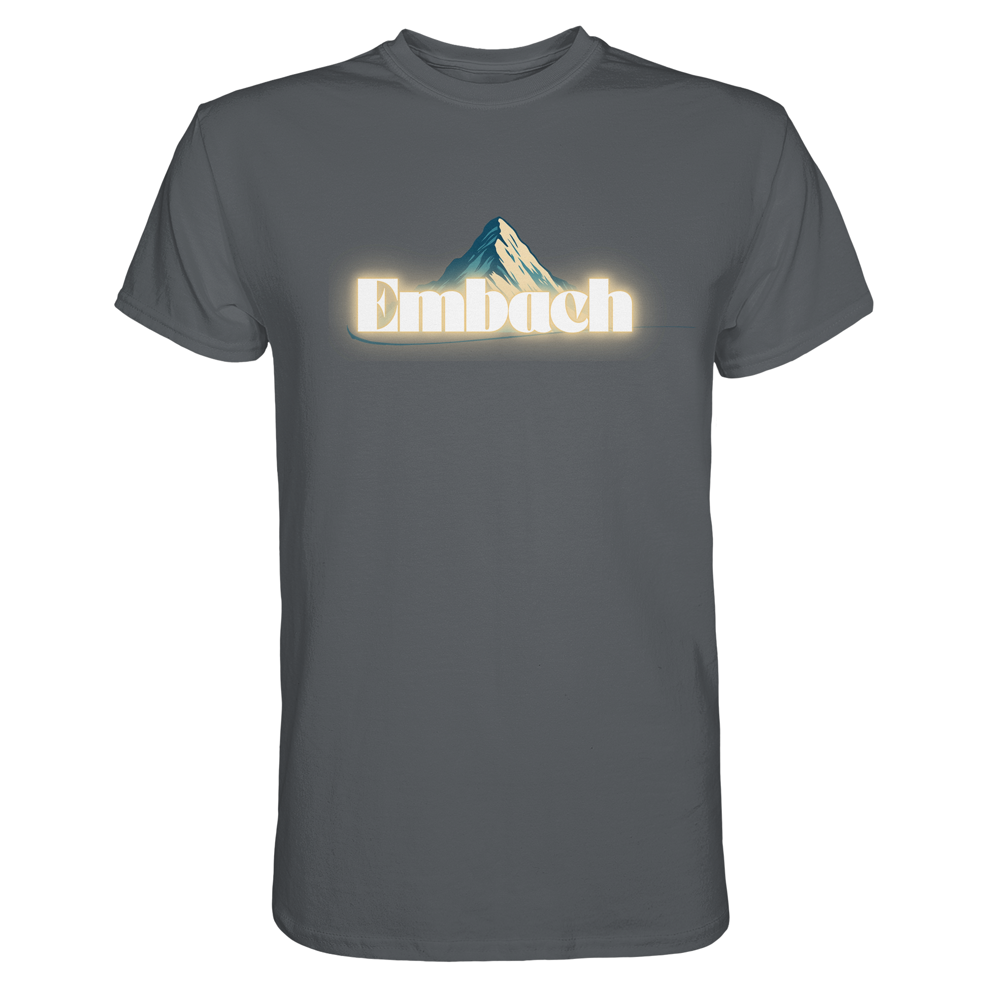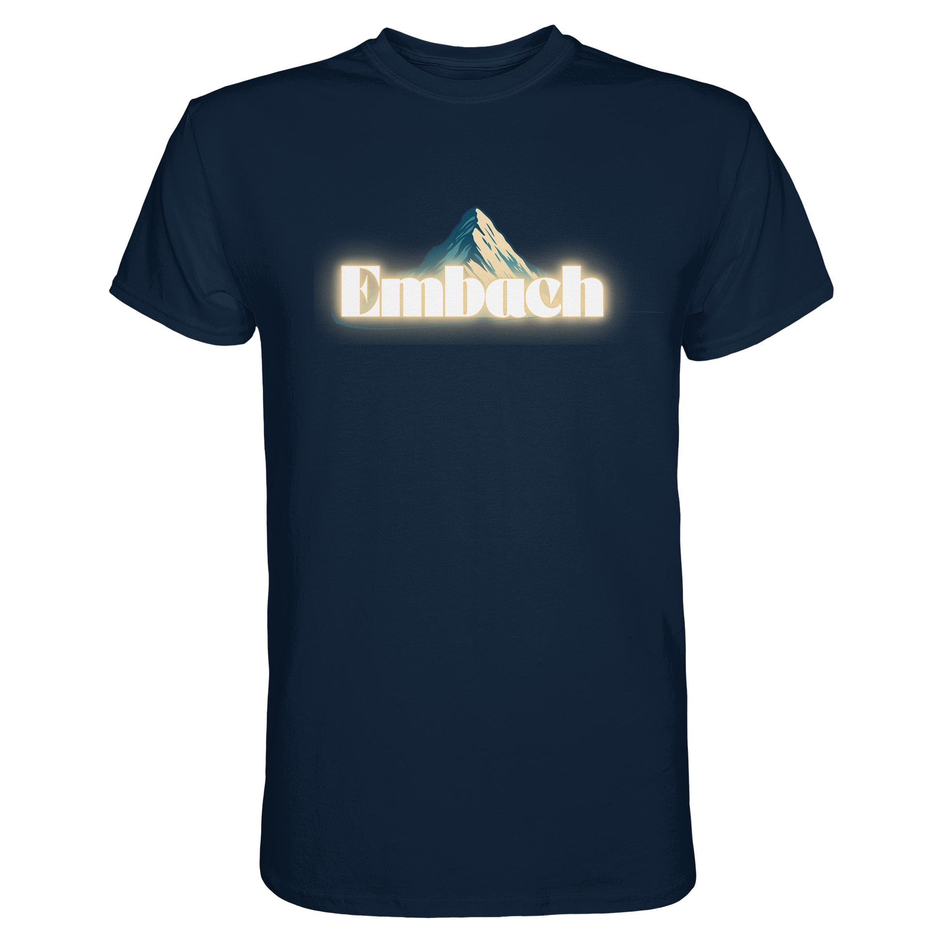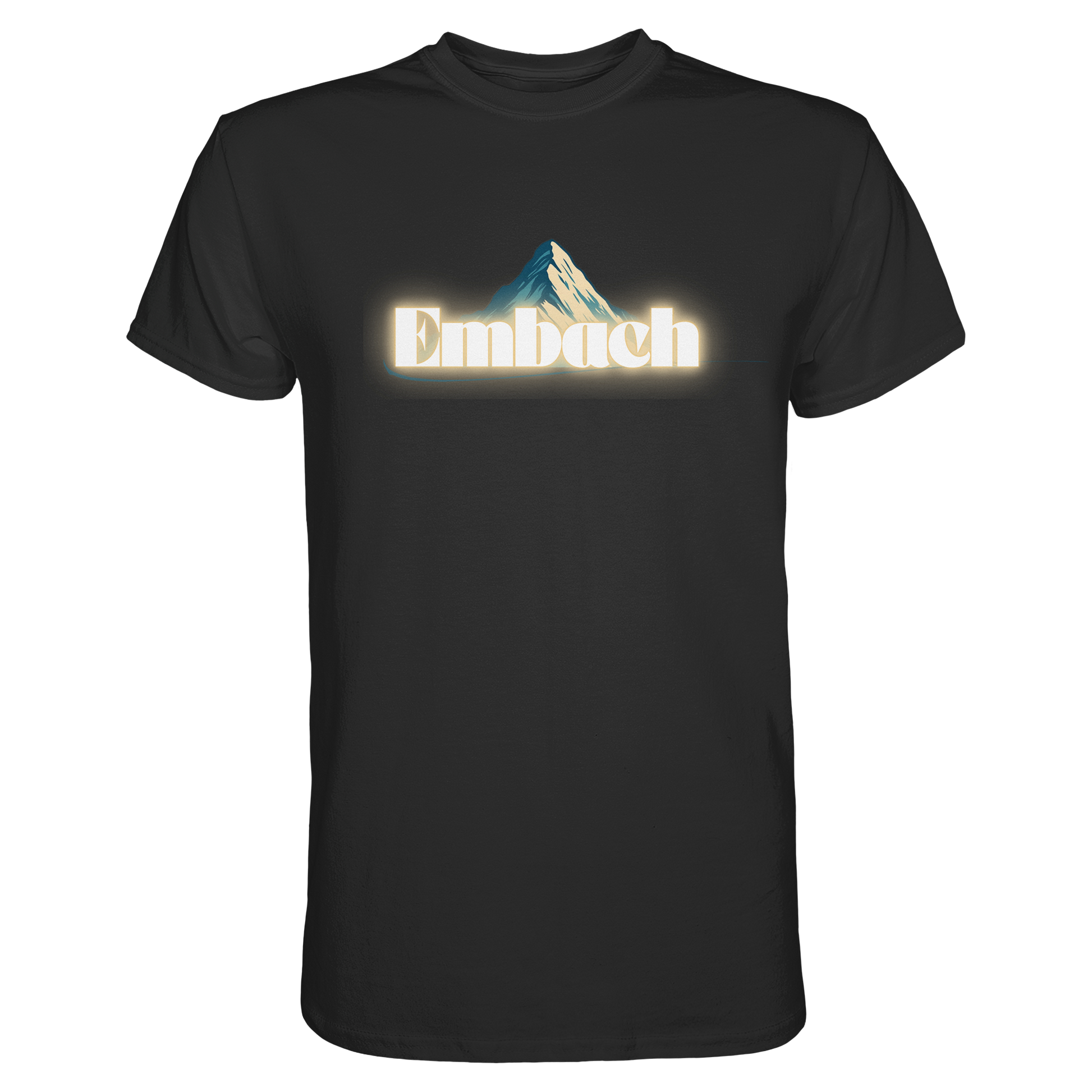 Reduziert auf das Wesentliche: der markante Embach-Schriftzug mit Bergmotiv auf der Brust.