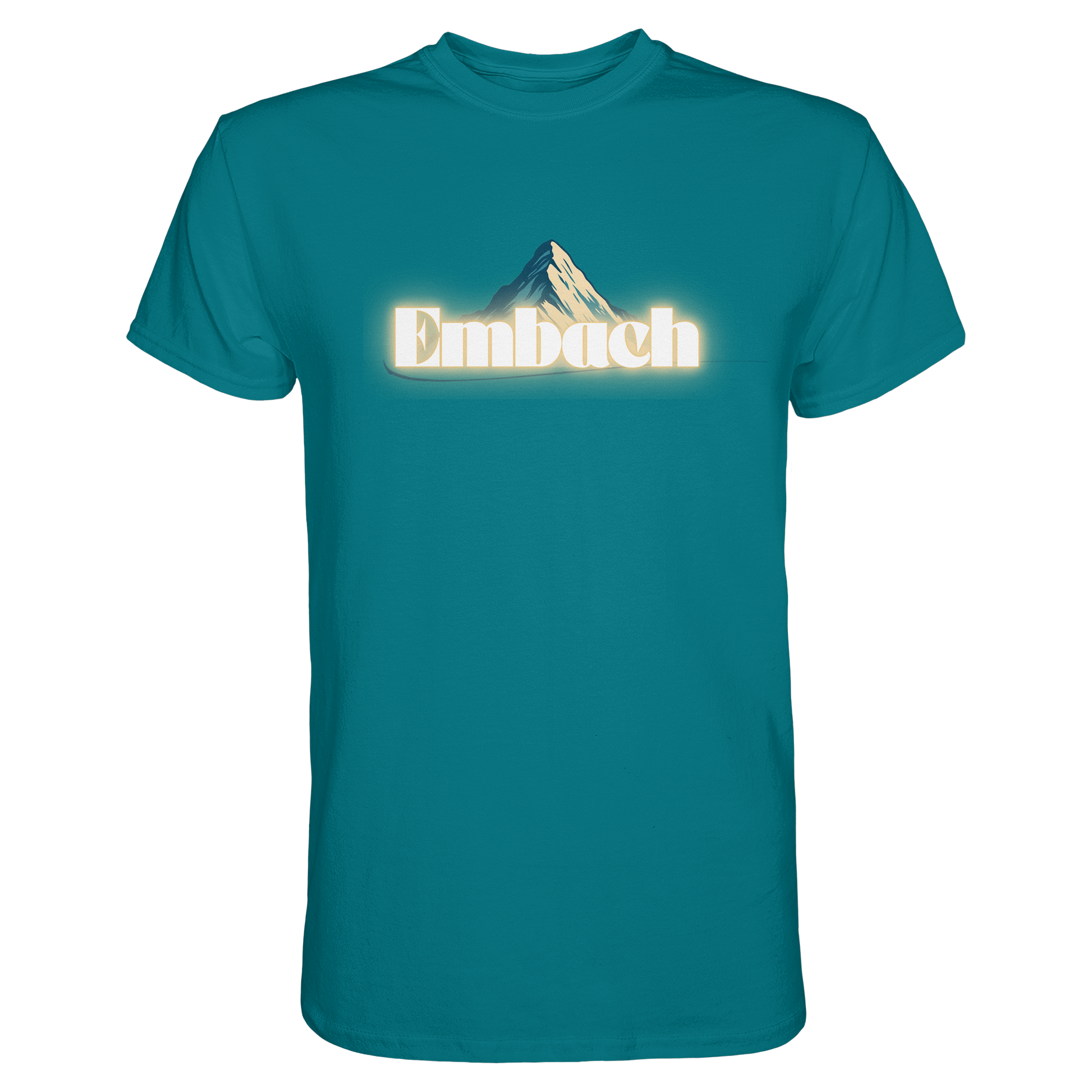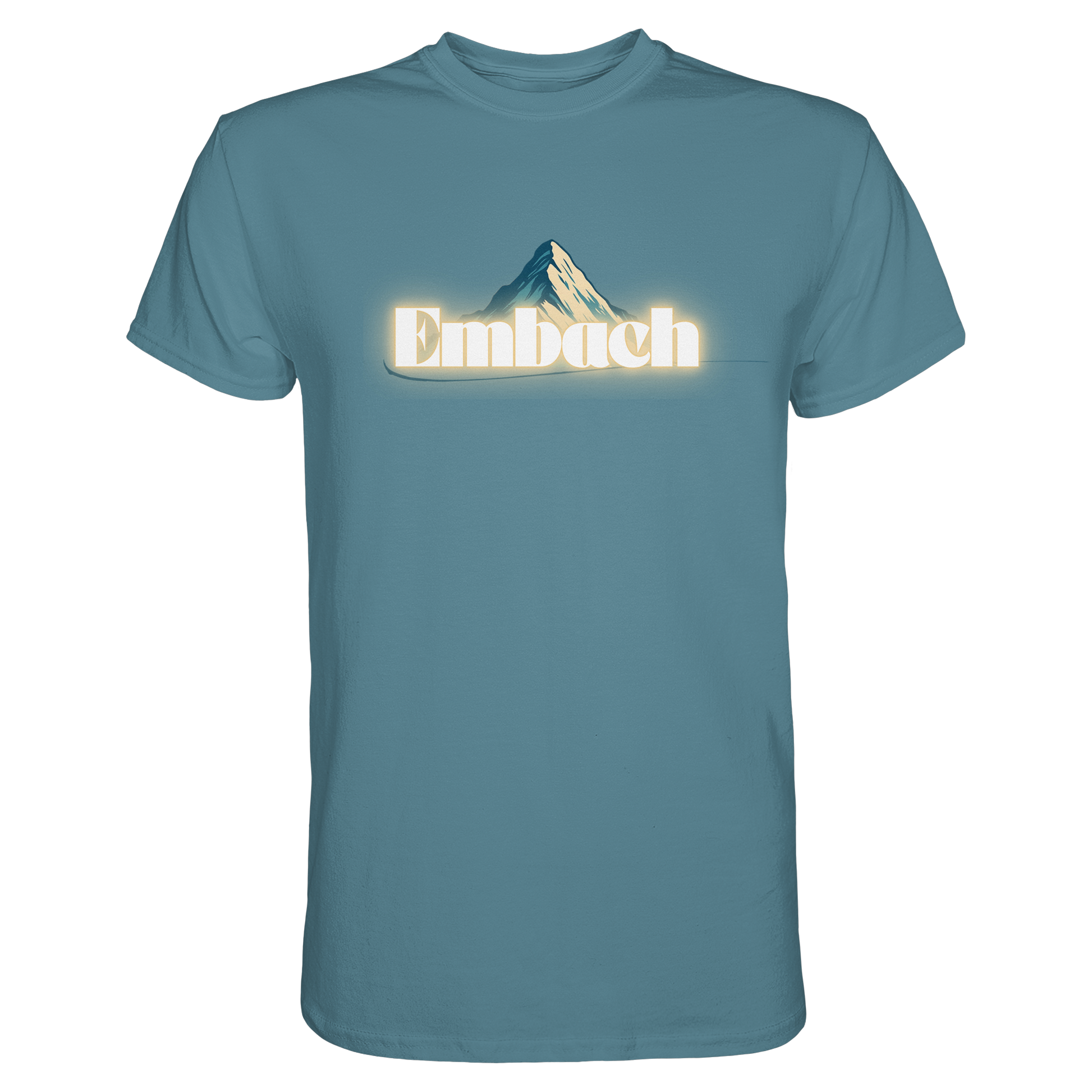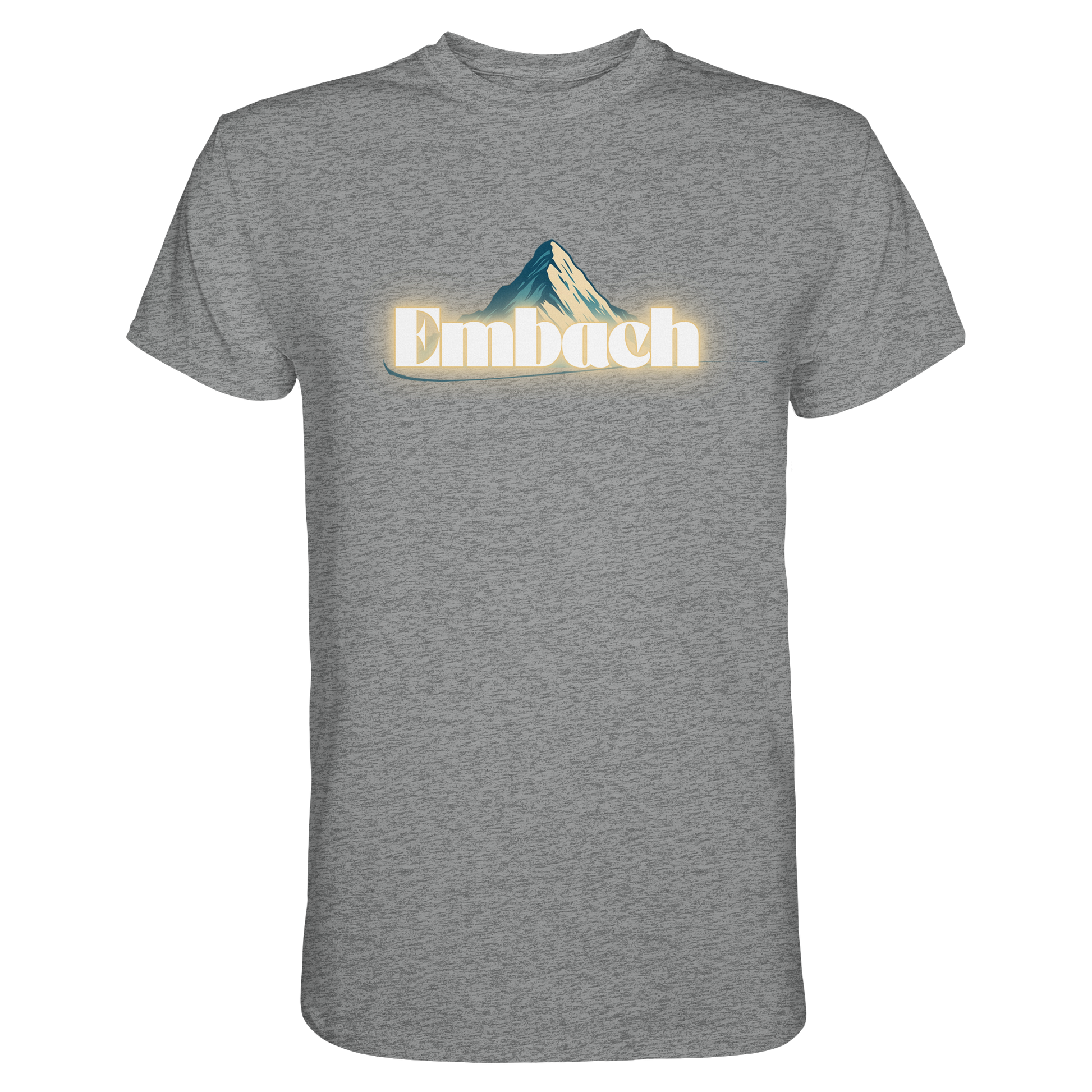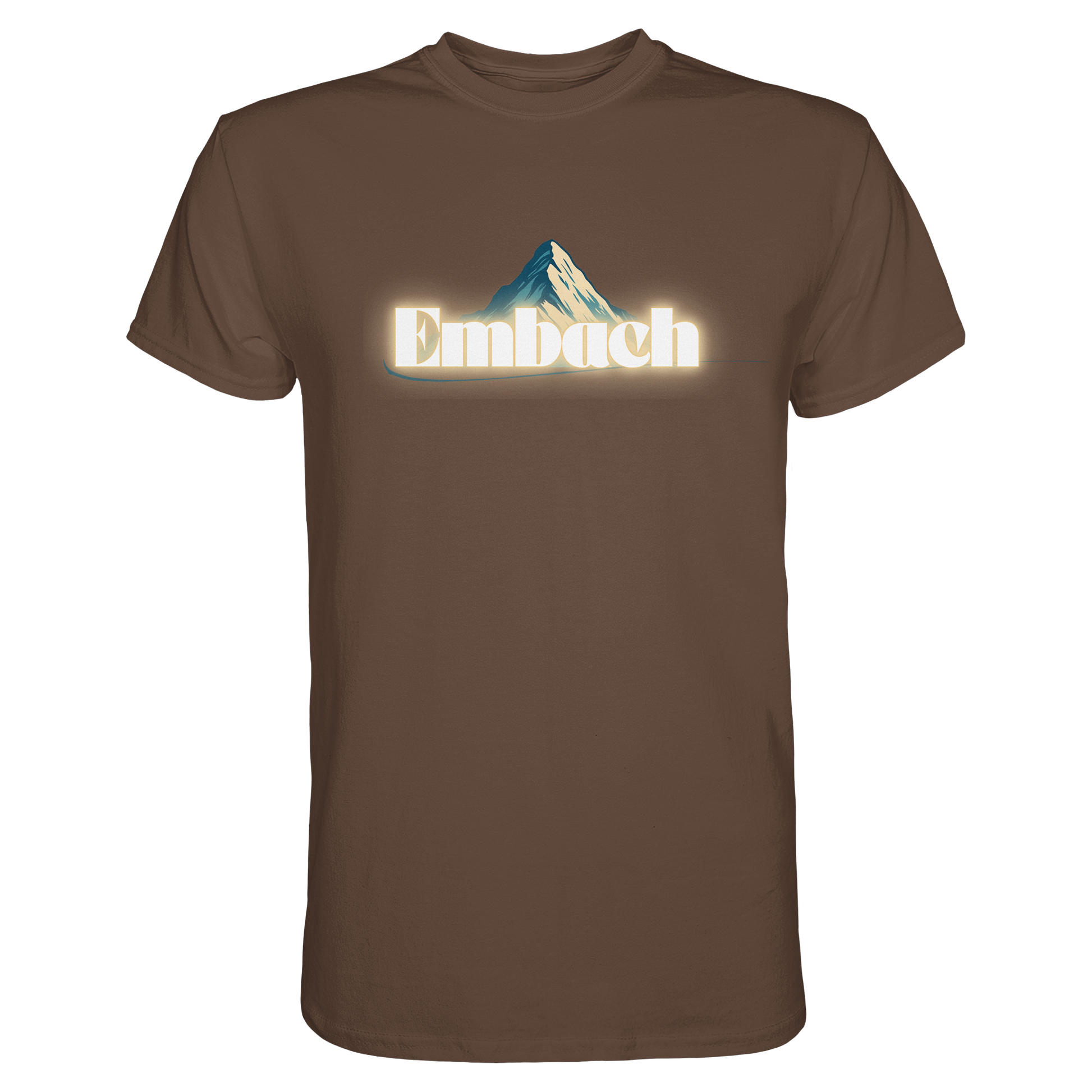Reduziert auf das Wesentliche: der markante Embach-Schriftzug mit Bergmotiv auf der Brust.