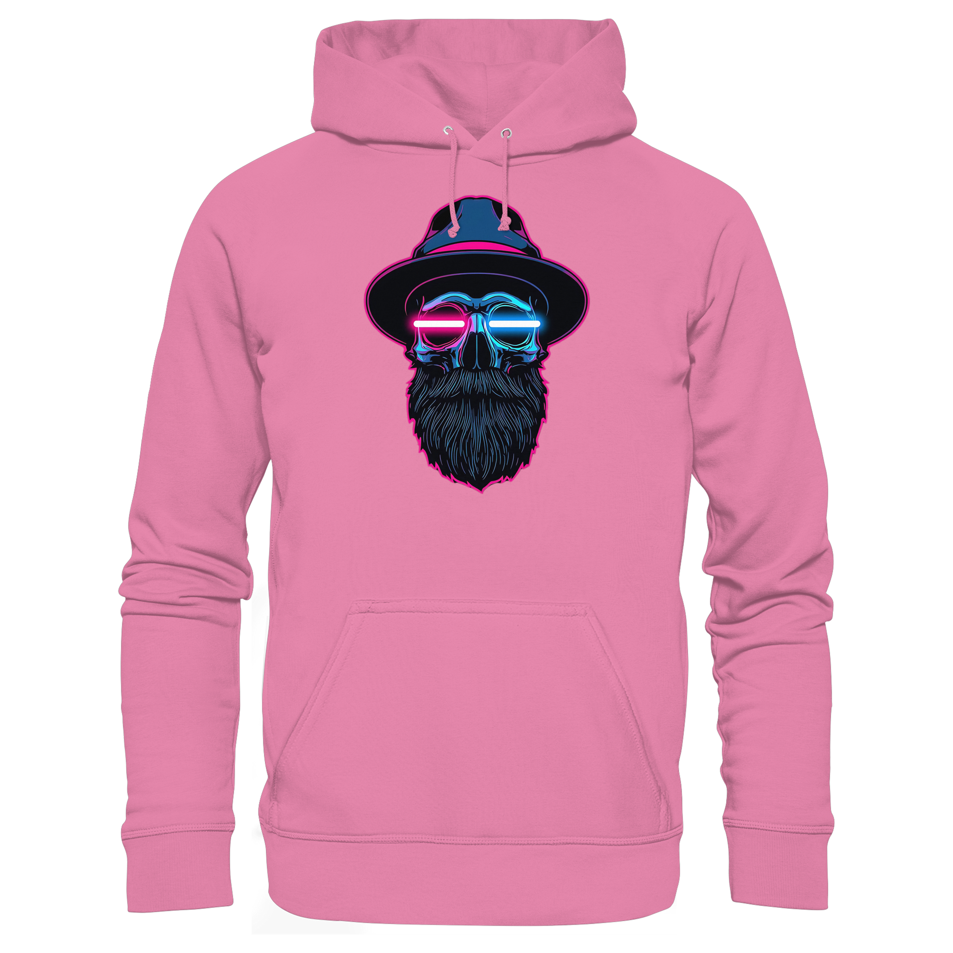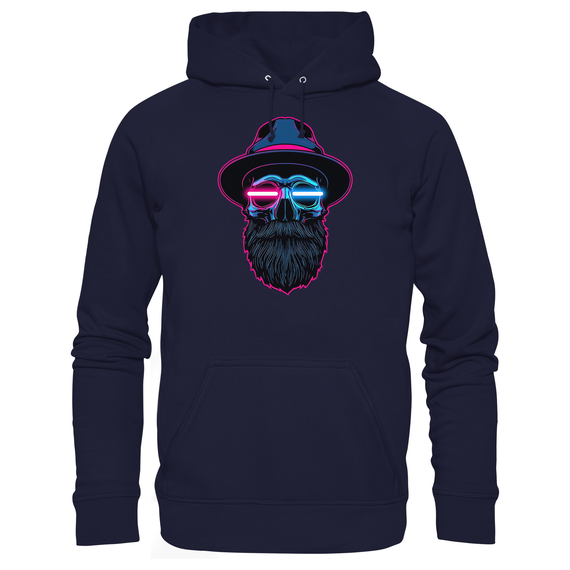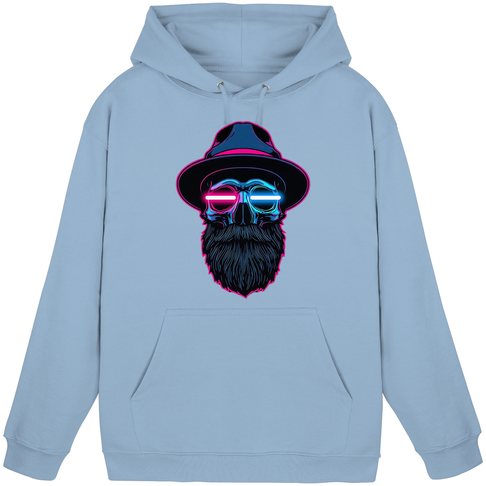 Ein ikonisches Hoodie-Design mit leuchtendem Totenkopf im Cyberpunk-Stil – perfekt für Raves, Clubs oder Streetwear-Looks.