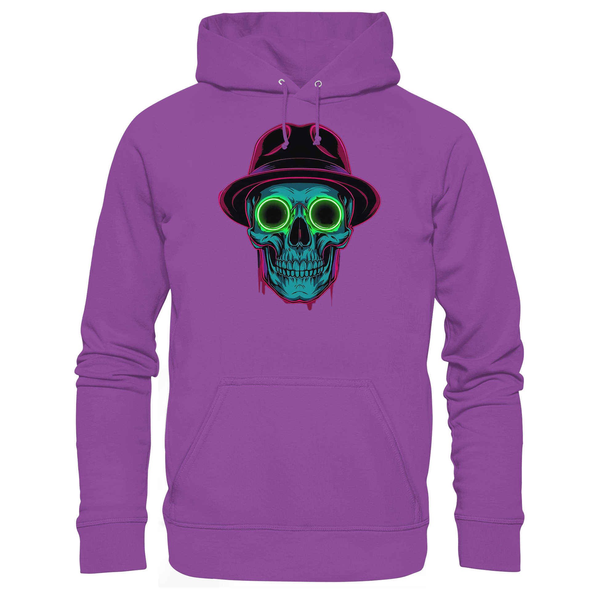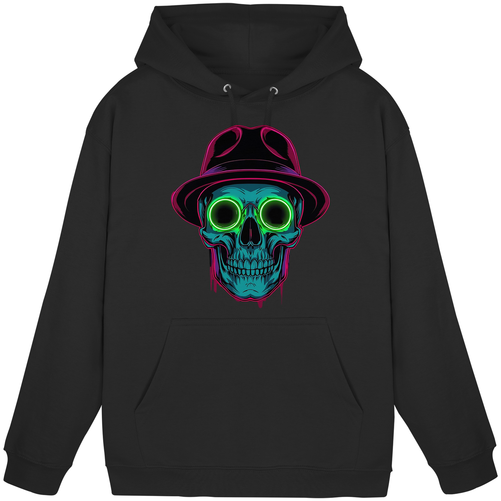 Ein Hoodie für alle, die Neon-Vibes lieben – von Techno bis Cyberpunk.