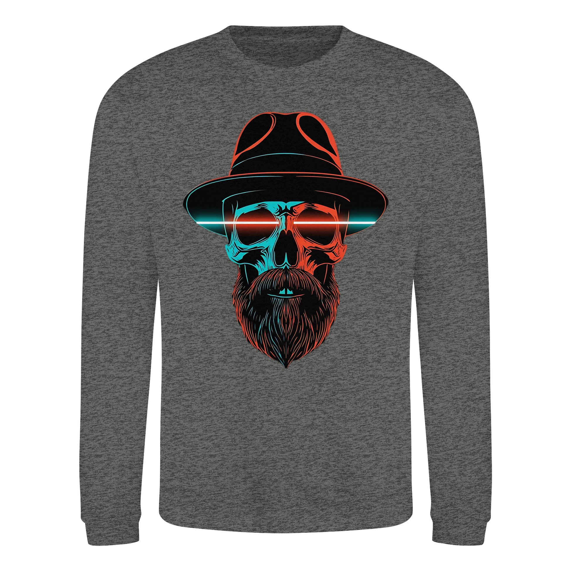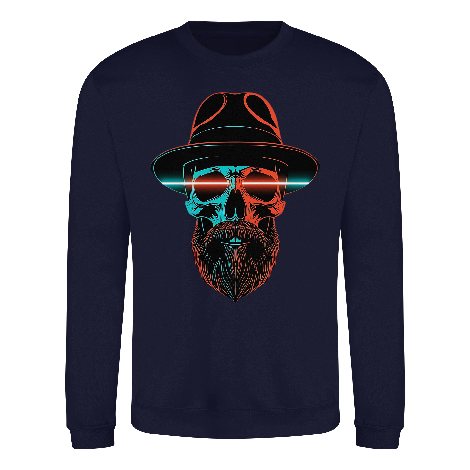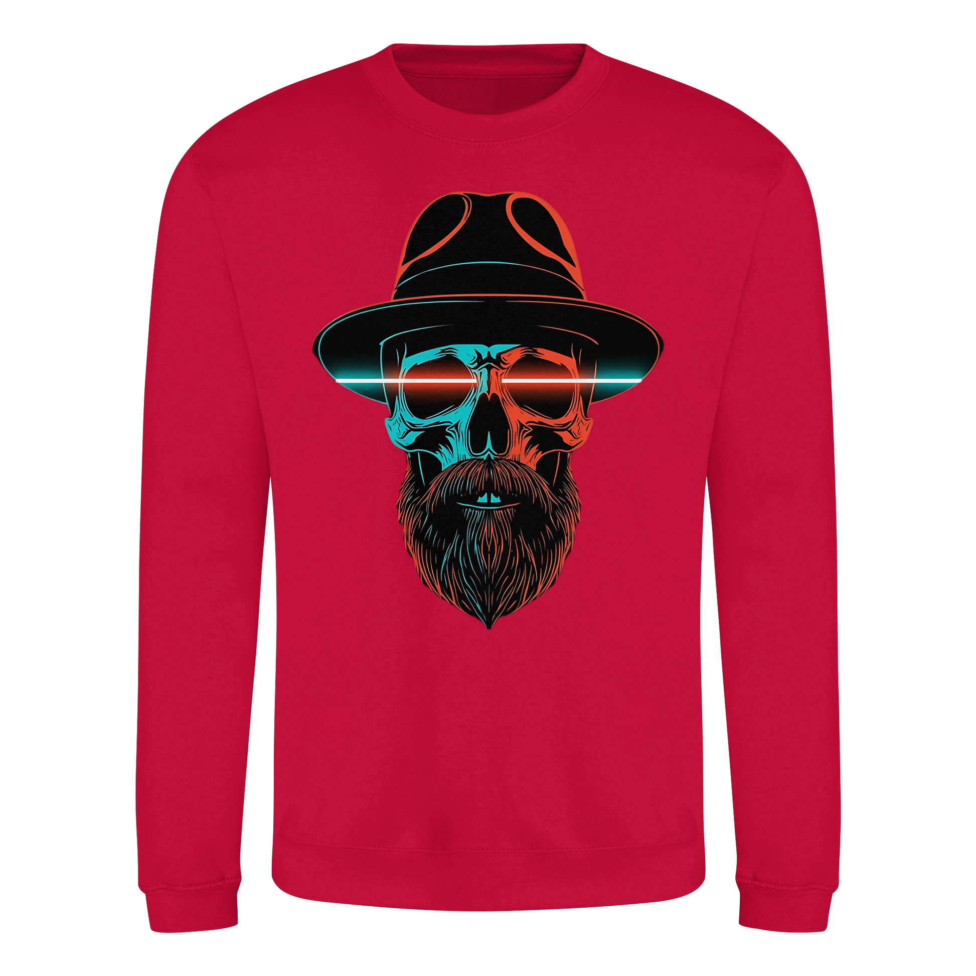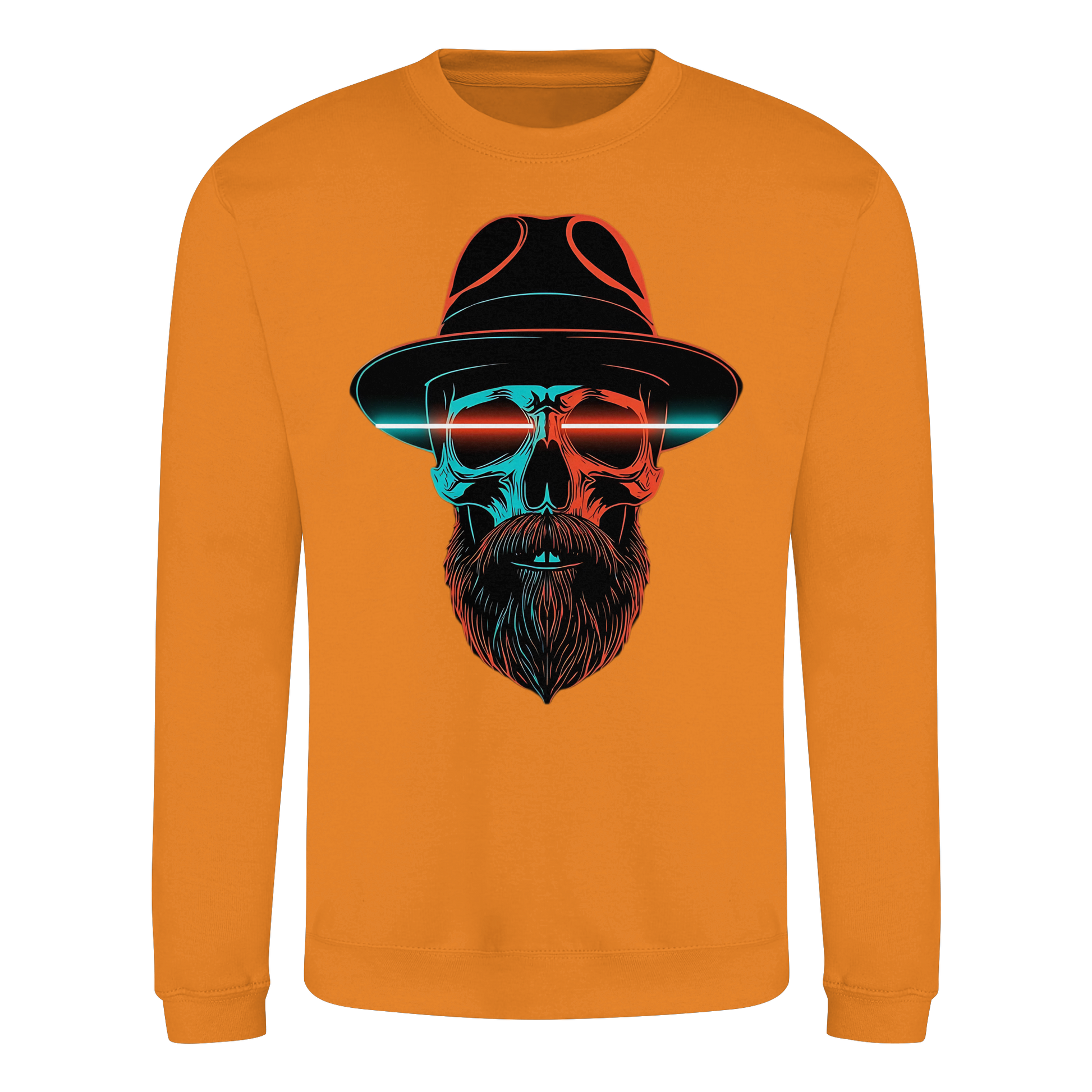 Ein markanter Schädel mit Hut und Bart im Neonstil. Cool, düster und auffällig, perfekt für urbane Looks. Das Motiv strahlt Energie aus und bleibt im Gedächtnis.
