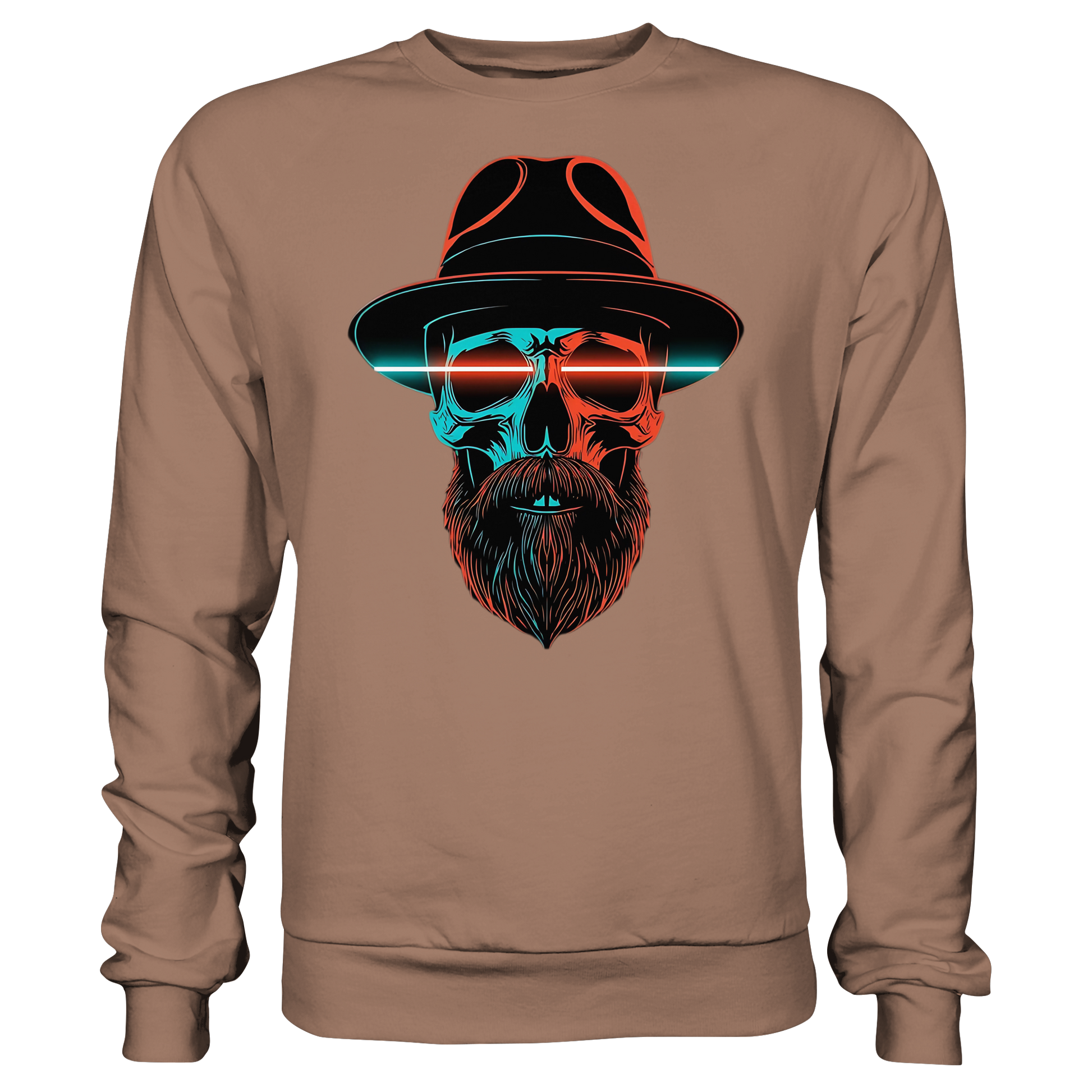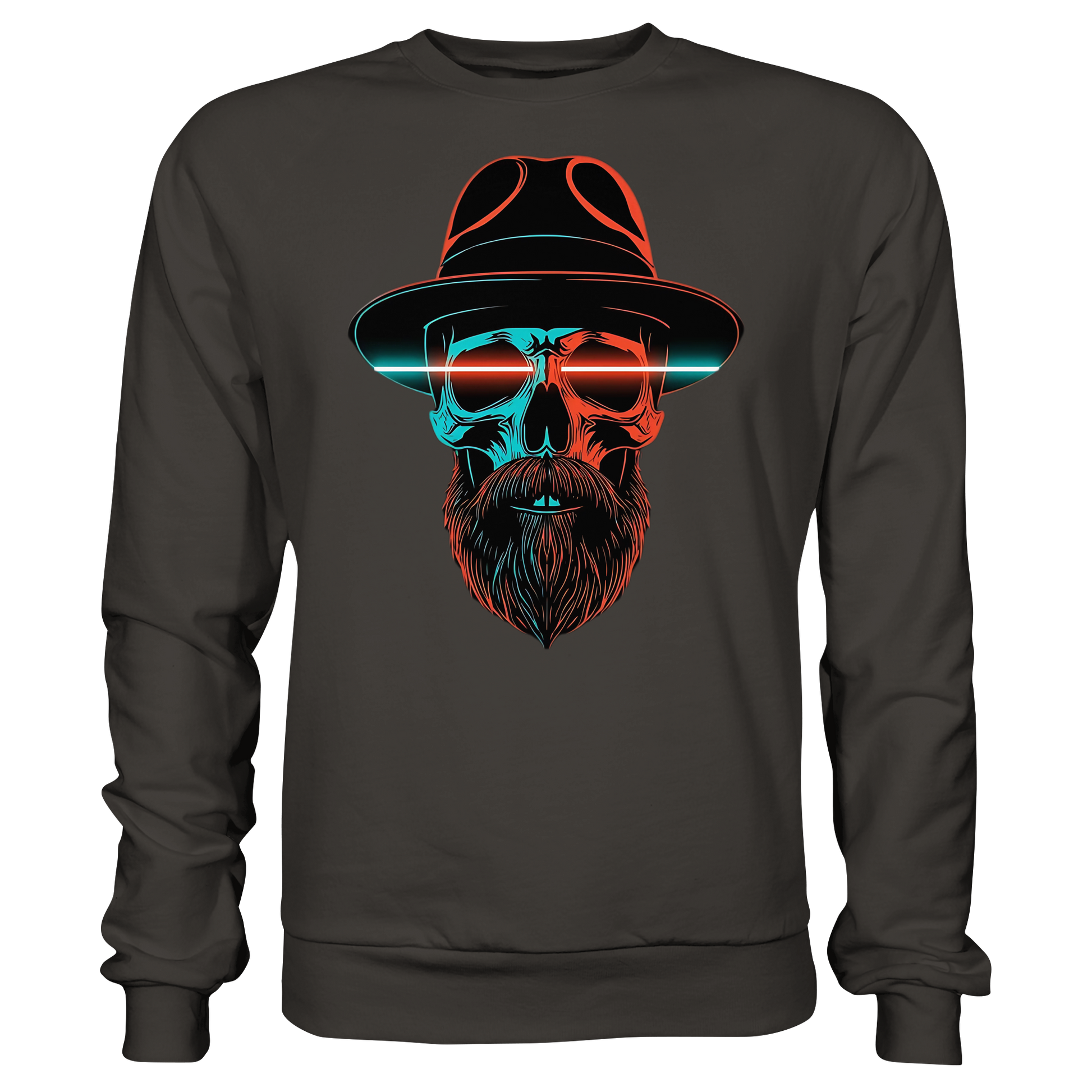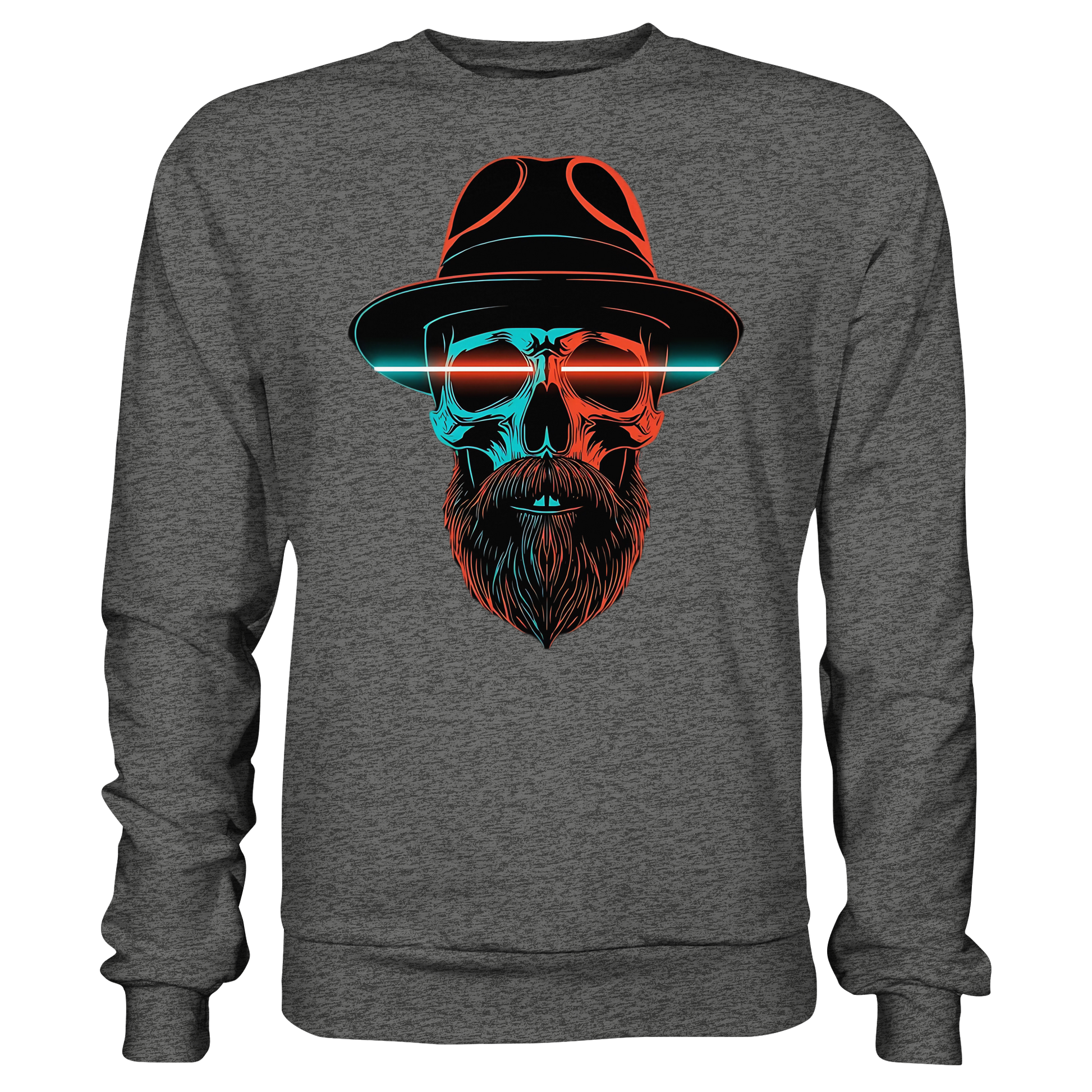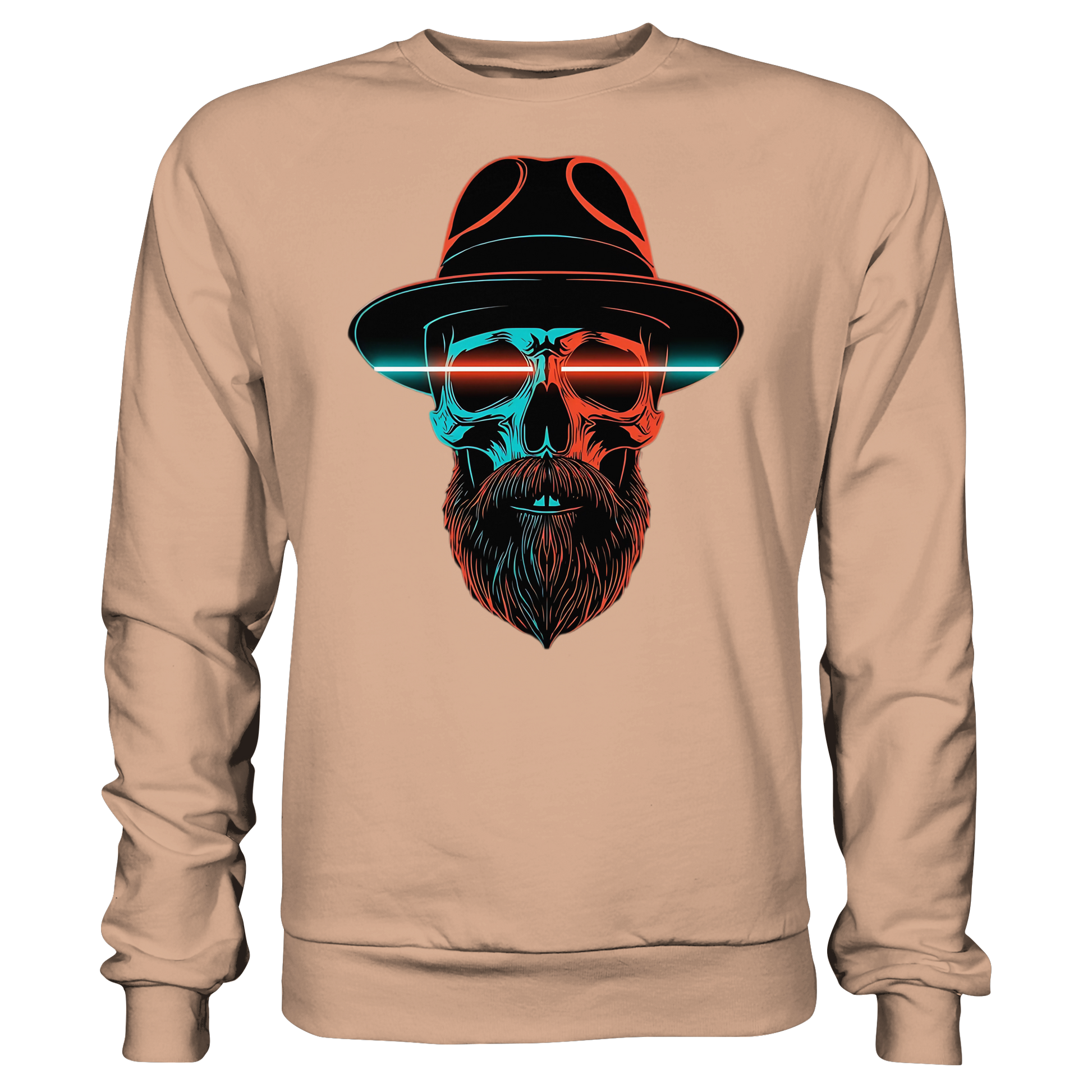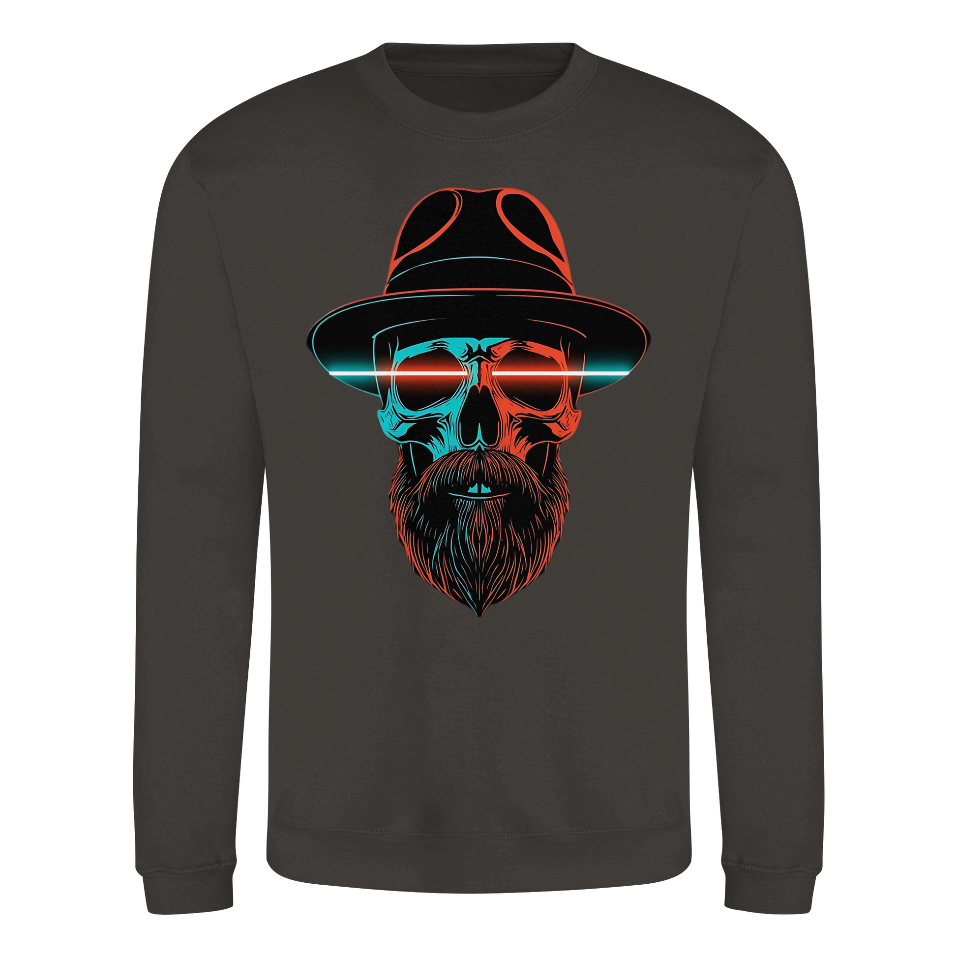 Ein markanter Schädel mit Hut und Bart im Neonstil. Cool, düster und auffällig, perfekt für urbane Looks. Das Motiv strahlt Energie aus und bleibt im Gedächtnis.