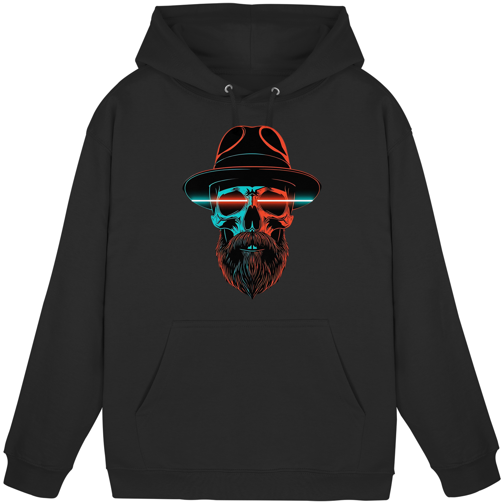 Ein Hoodie mit strahlendem Totenkopf im Neon-Look – perfekt für Raver, Clubgänger und Streetwear-Fans.