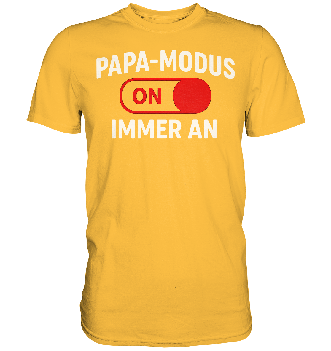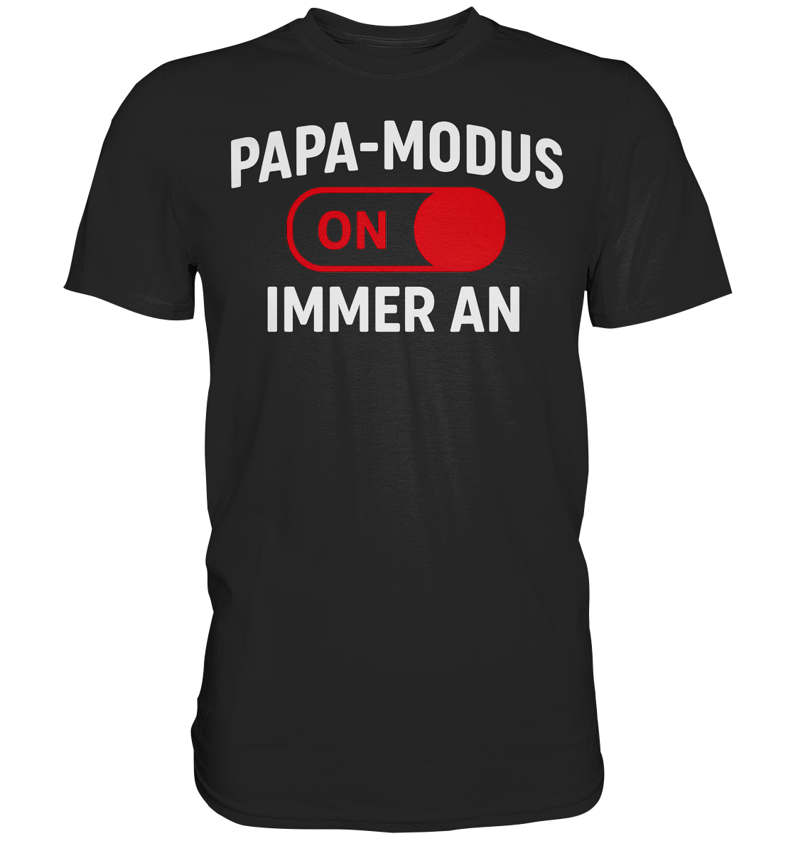 Wenn der Schalter auf ON steht, ist der Papa im Einsatz – und das rund um die Uhr! Der kräftige Schriftzug „PAPA-MODUS“ hebt sich in dunklem Navy ab, während der grüne Kippschalter signalisiert: Kein Ausruhen, kein Pausieren, sondern 100 % Fürsorge und Action. Darunter verabschiedet dich das sanfte „IMMER AN“ mit einem Augenzwinkern in den Tag. Ein Shirt, das nicht nur stylisch ist, sondern auch allen zeigt, wie stark und präsent Papa wirklich ist – eine tolle Geschenkidee zum Vatertag!
