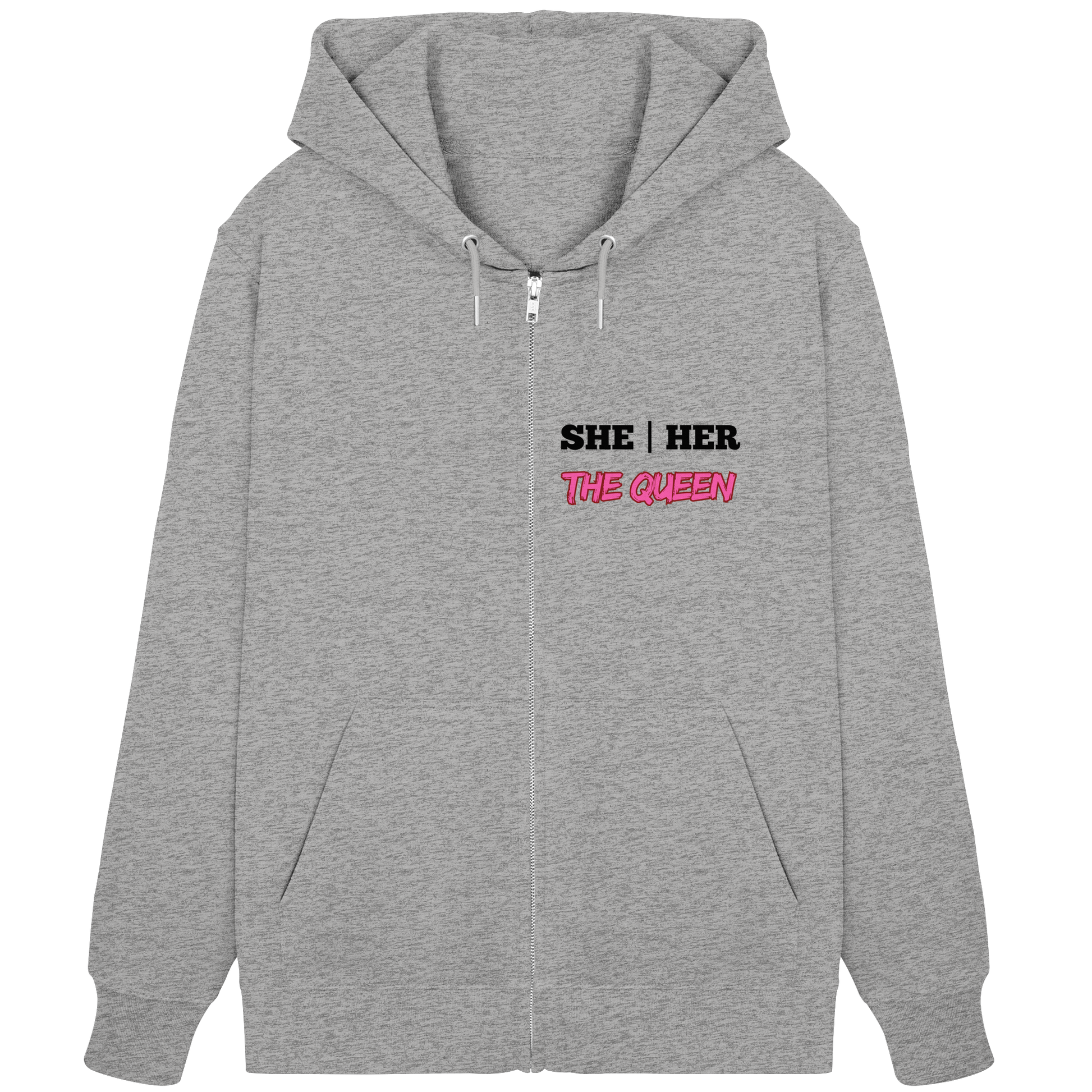 "she / her – THE QUEEN" says it all: feminine, fierce, and unapologetic.