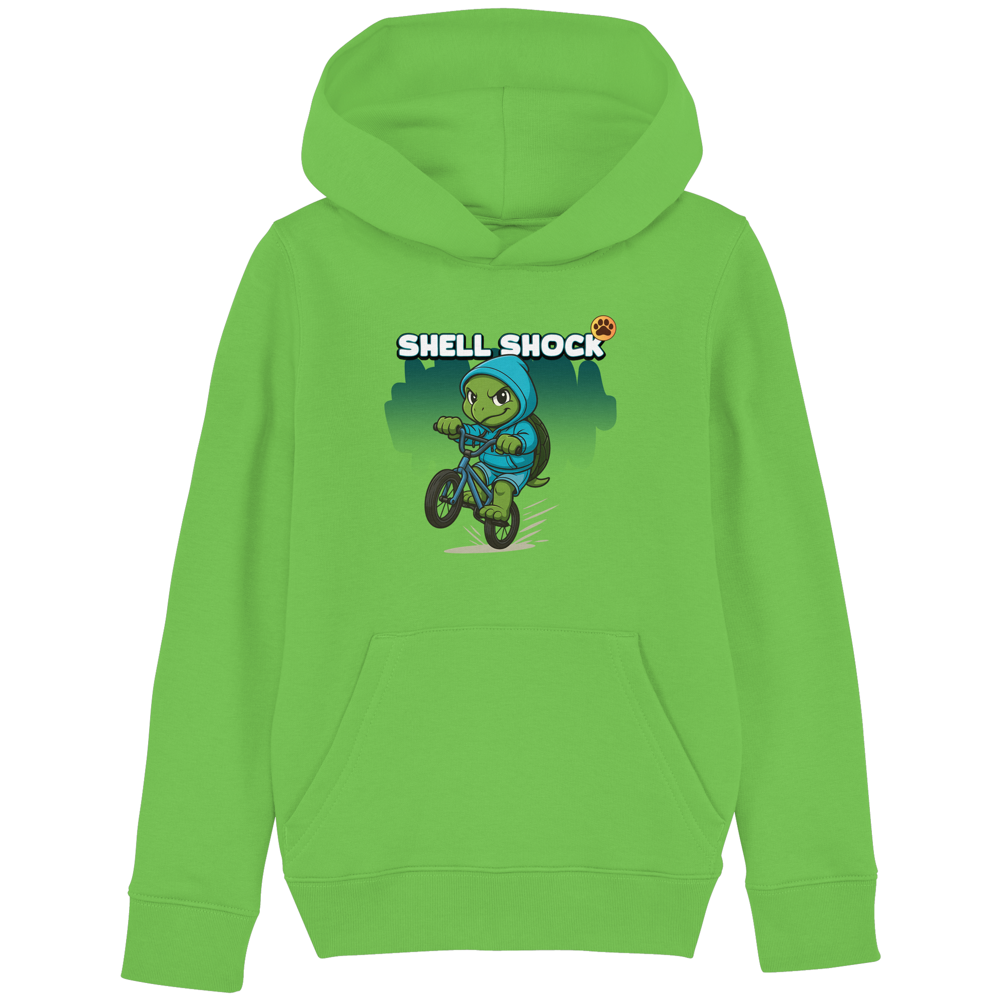 Mit dem Shell Shock BMX Hoodie holst du dir Action pur. Die Schildkröte der Wild Crew zeigt ihre Skills auf zwei Rädern. Street-Style, bequem und voller Crew-Energie.