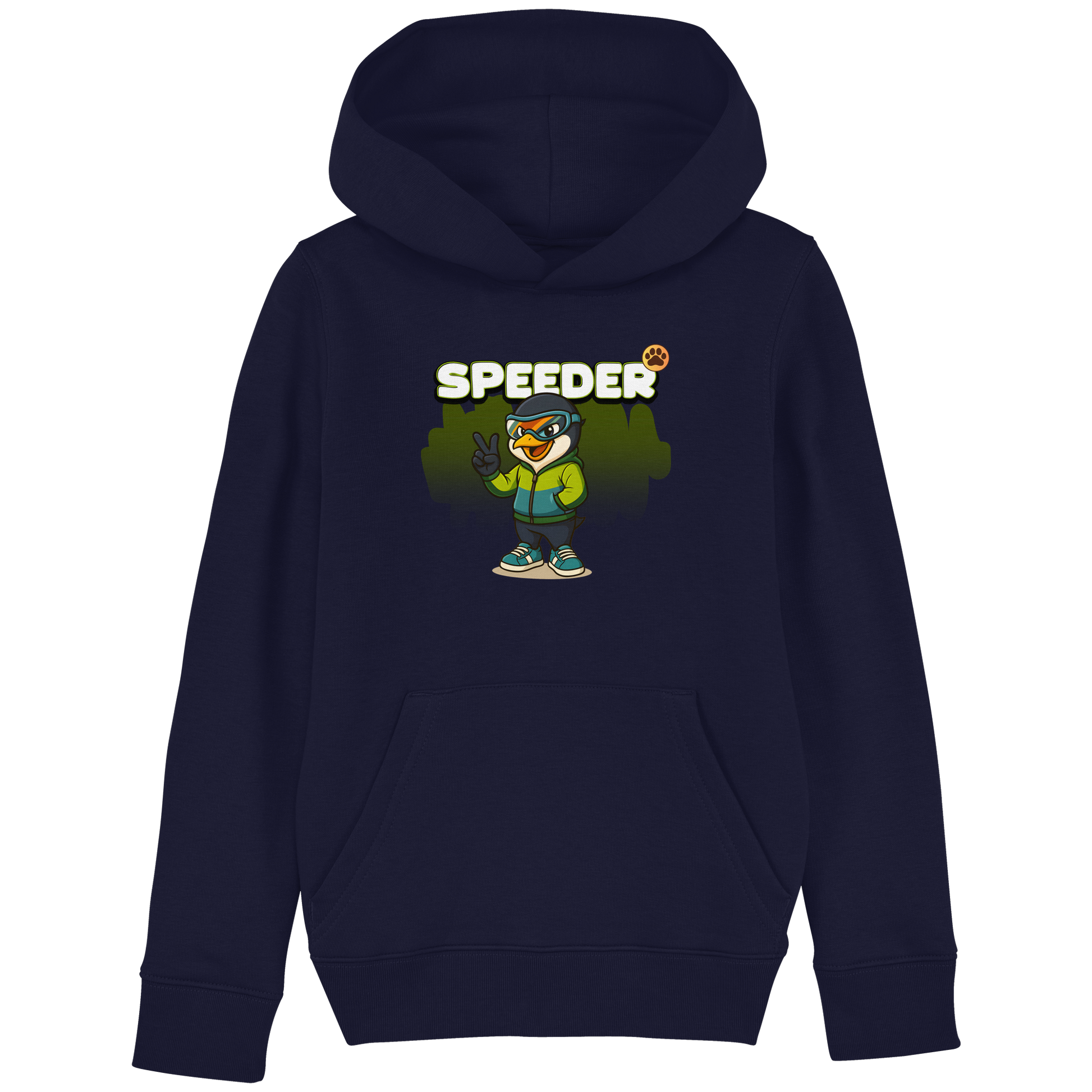 Mit dem Speeder Hoodie wird es rasant. Der Pinguin mit Hoodie und Sneakers ist immer vorne dabei. Crew-Style trifft auf Geschwindigkeit – perfekt für Kids, die auffallen wollen.
